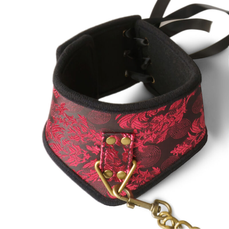 Luxe Rode Bondage Halsband met Gouden Ketting