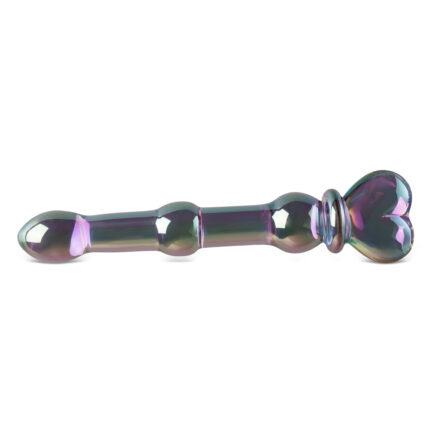 Stijlvolle glazen dildo met regenboog parelmoer afwerking en ribbels voor extra stimulatie. Perfect voor temperatuurspel en ultieme elegantie in de slaapkamer.